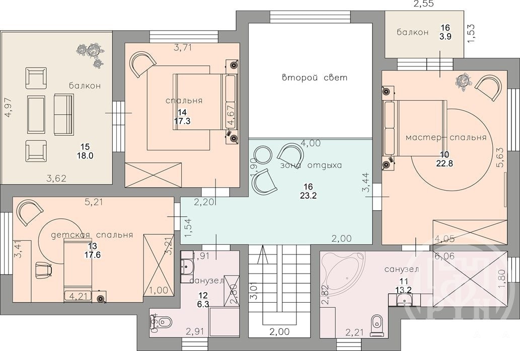 4 просторные спальни с высокими потолками и 3-мя балконами;