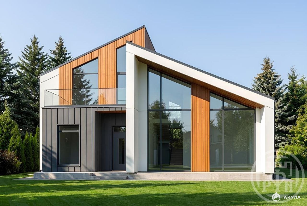№343367 Современный 2х этажный частный дом в стиле хай-тэк в окружении сосен и елей.