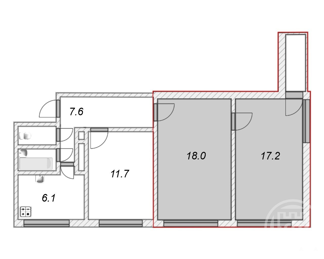 №340729 192 Предлагается к продаже две комнаты в 3 к. коммунальной квартире по адресу Лен.обл. Выборгский р-он п.Первомайское ул.Ленина д.70. Квартира расположена на первом этаже пятиэтажного панельного дома г.п.1984. Общ пл.64/46, 9 кухня 6, 1 коридор 7, 6 с/у раздельный. Комнаты 17, 2 + застекленная лоджия и 18, 0 изолированные. Собственность доля в праве 48/64 приватизация от 2008г ; в пользование комнаты 17, 2+ 18, 0. В Комнате 11, 7 проживает один мужчина( в перспективе есть возможность ее выкупить). Квартира требует ремонта. Три взрослых собственника. Прямая продажа. В поселке есть вся инфраструктура. Удобное сообщение с СПб. Просмотры по предварительной договоренности.