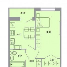 1-92856 Продается однокомнатная квартира площадью 40.6 кв.м. Квартира с уникальной планировкой. Комната 14.8 кв.м. с балконом , кухня 12 кв.м и большой совмещенный санузел 8 кв.м с балконом. В квартире два больших застекленных балкона, что позволяет организовать зоны для хранения и...