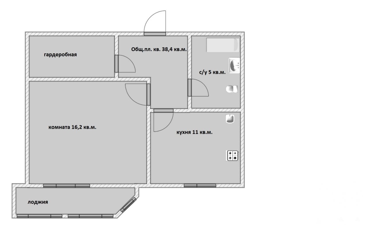 Лоджия: 3, 5 кв.м. с выходом из комнаты.