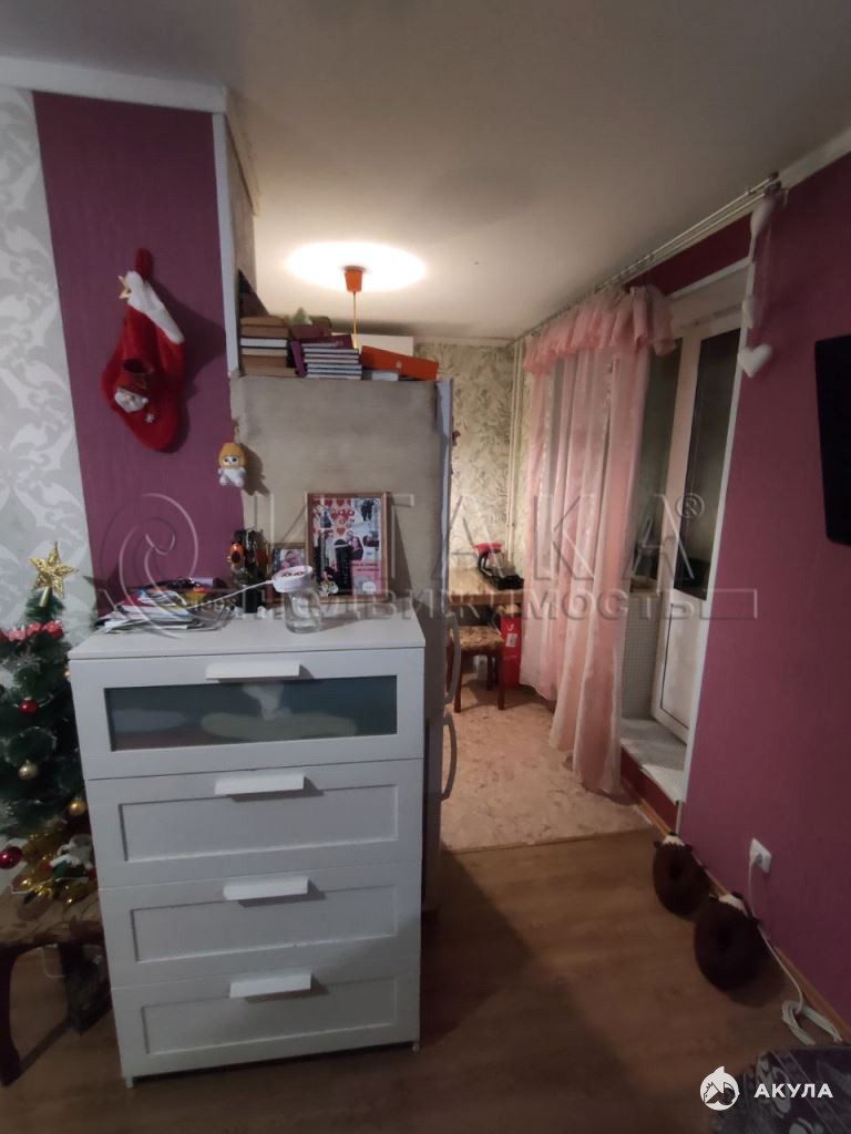 Просторная прихожая с удобной нишей для встроенного шкафа, кухня с выходом на застекленный балкон, комната правильной формы.