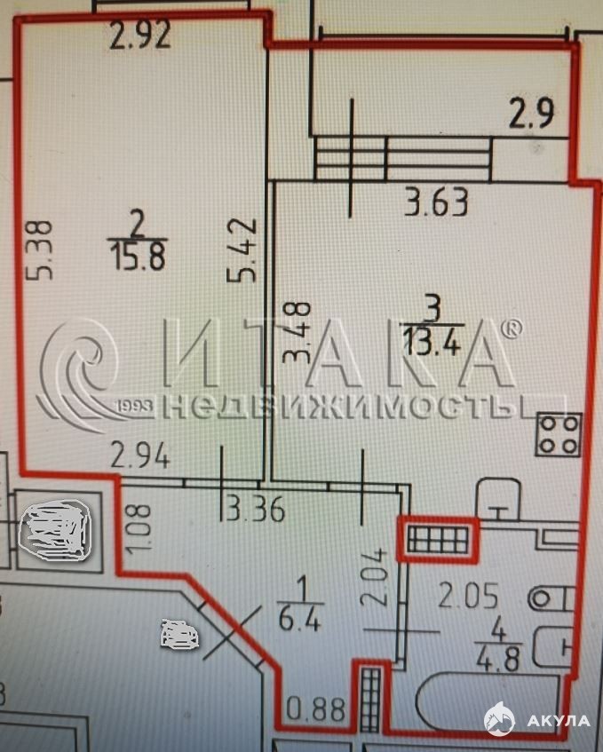 площадью 40, 4м ( без учета площади застекленной лоджии),