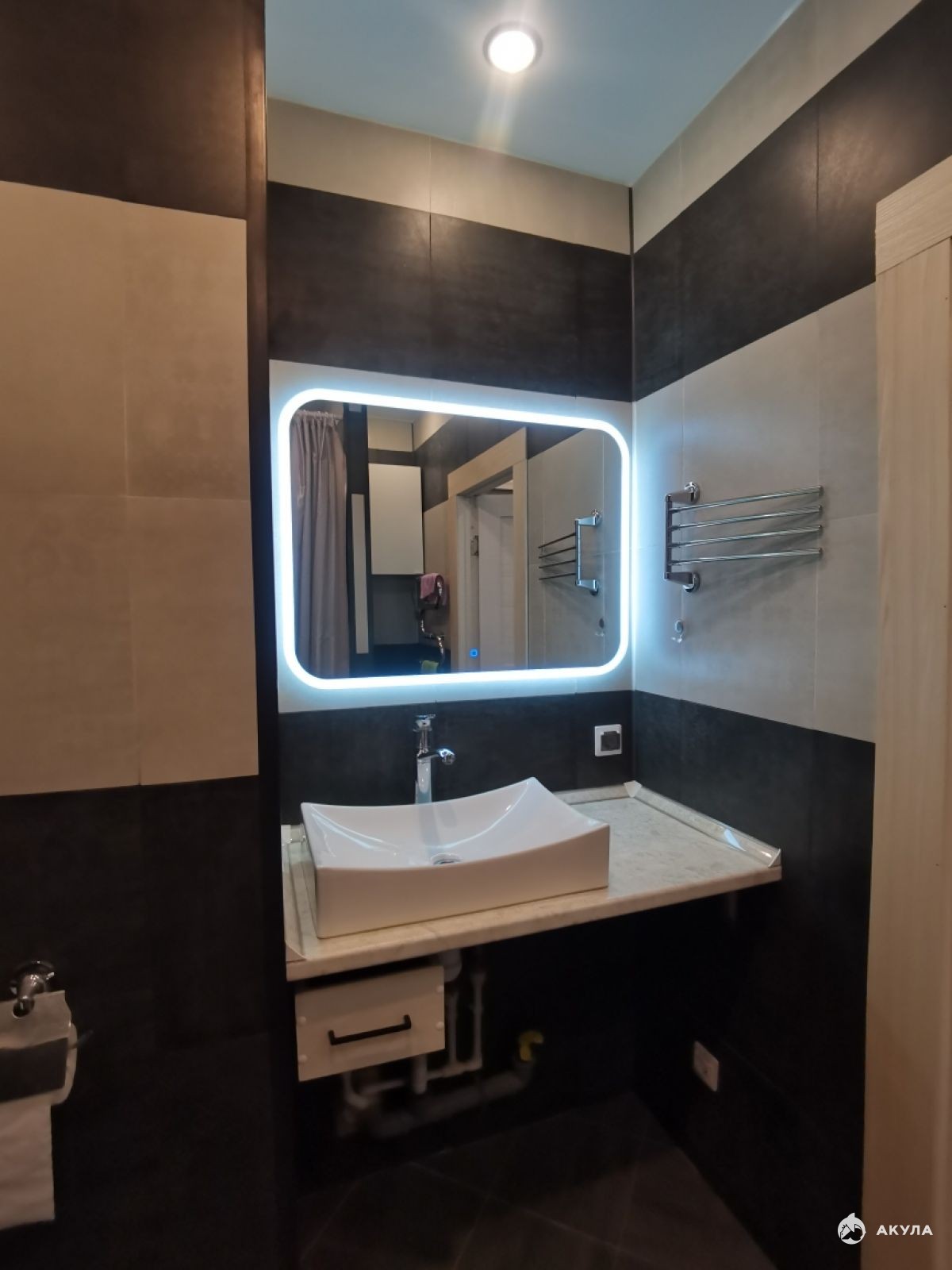В квартире сделан дизайнерский ремонт качественными экологичными материалами. Квартира укомплектована хорошей бытовой техникой и современной мебелью. На балконе и в с/узле сделаны теплые полы. Есть свой счетчик на отопление и возможность регулировки подачи тепла в квартиру.