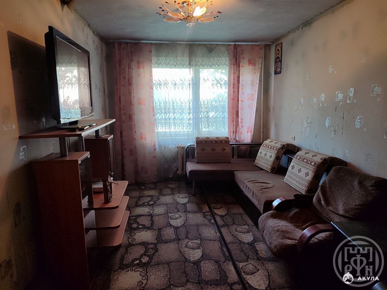 Общая площадь- 30.3 м. кухня- 7.4, комната- 16, 6 м. Дом панельный, 1972 года.