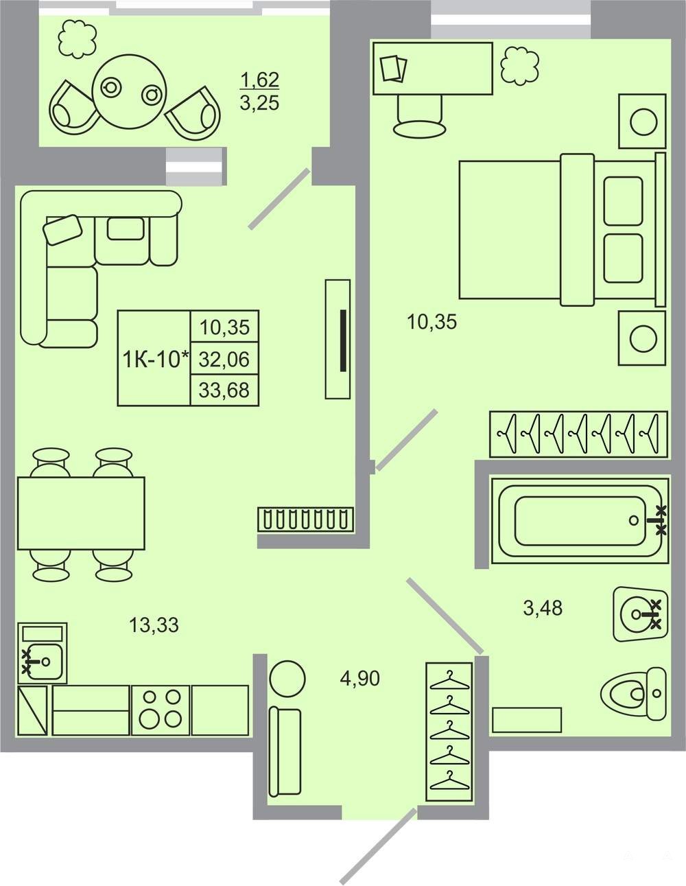 - 10.35 м²