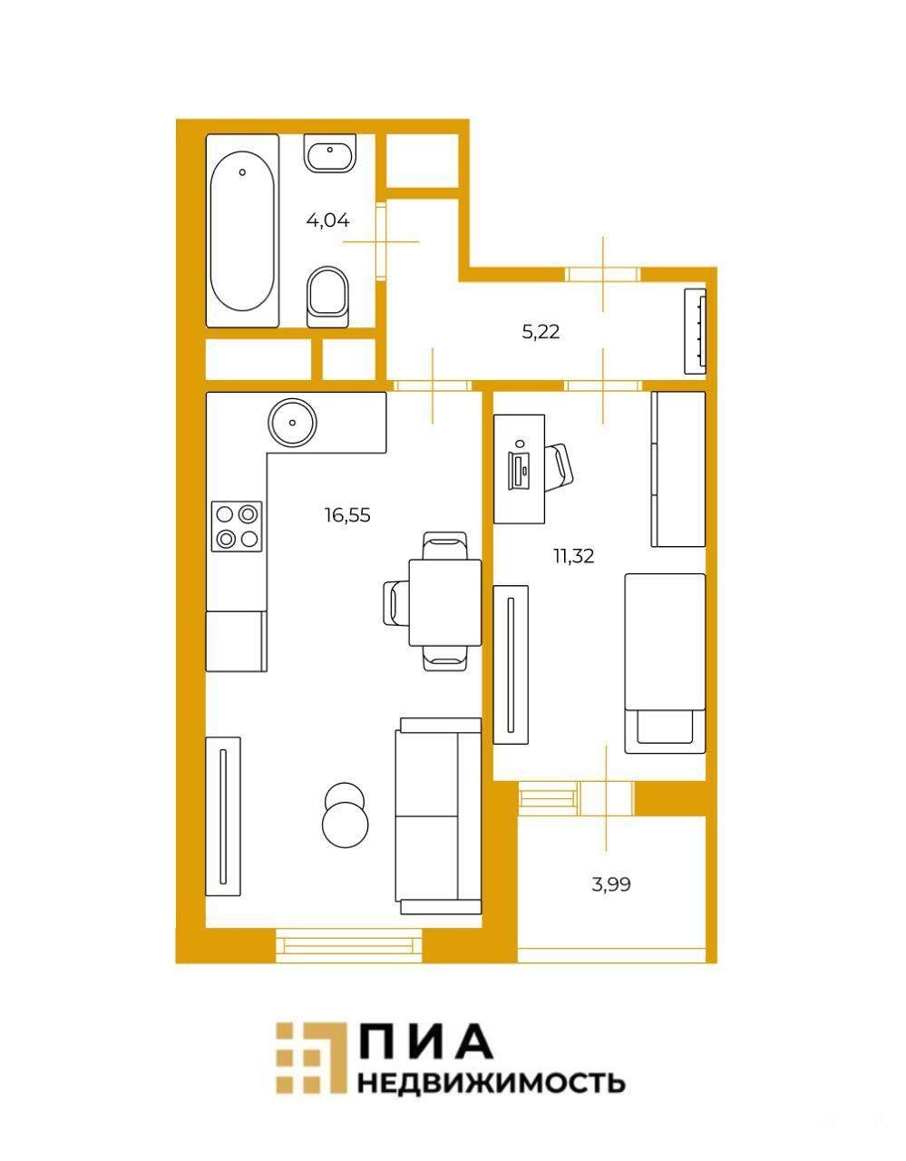 Просторная кухня-гостиная 16, 55кв.м. , с четким зонированием пространства, позволит встречать гостей и проводить семейные вечера. Правильной формы комната11, 3 кв.м. - это отличный вариант для большой семьи или сдачи в аренду.
