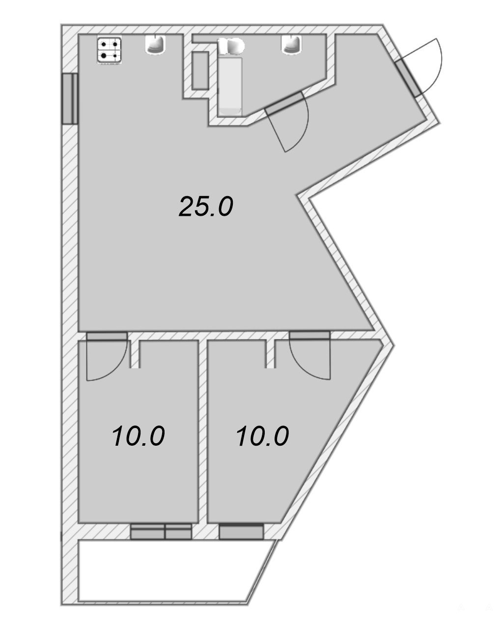 Квартира с функциональной планировкой: кухня-гостиная 25 кв.м, две изолированные комнаты по 10 кв.м. Кладовая 2кв.м., общая площадь 61 кв.м. Панорамный балкон на две комнаты с остеклением в пол. Продажа вместе с системой хранения в спальне и в кладовой, кухонный гарнитур. Остальное по договоренности.