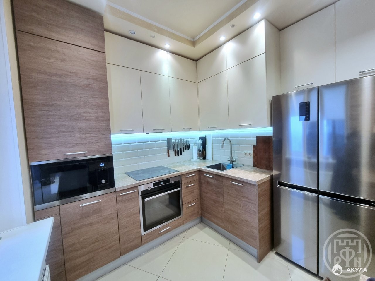 Отличная функциональная кухня остается новым владельцам со всей встроенной бытовой техникой Kuppersberg (варочная поверхность, вытяжка, свч, посудомоечная машина, духовой шкаф AEG). В с/у так же остается встроенная мебель с ламинацией из пластика и бойлер Electrolux.