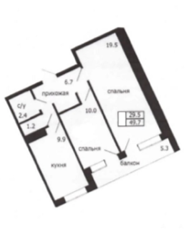 Квартира общей площадью 47, 8 кв. метров, жилая -29, 5 м2, кухня - 9, 9 м2, раздельный санузел, лоджия.