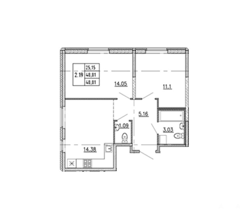 Две светлые спальни правильной формы: 14, 05 м² и 11, 1 м²