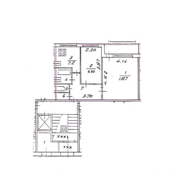 Комнаты: 10 кв.м + 18, 7 кв.м (изолированная планировка)