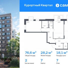 Строим кварталы для жизни с заботой о будущем. Предлагается 2-комнатная квартира комфорт-класса 76, 6 кв.м в корпусе 7 на 7 этаже, в ЖК «Курортный Квартал» Квартира с чистовой отделкой. Доступность дополнительных опций уточняйте у застройщика. Приобрести квартиру возможно по...
