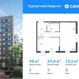 Строим кварталы для жизни с заботой о будущем. Предлагается 1-комнатная квартира комфорт-класса 48 кв.м в корпусе 7 на 5 этаже, в ЖК «Курортный Квартал» Квартира с чистовой отделкой. Доступность дополнительных опций уточняйте у застройщика. Приобрести квартиру возможно по...