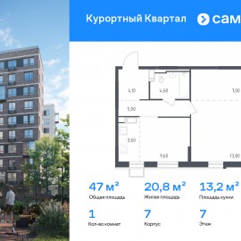 Строим кварталы для жизни с заботой о будущем. Предлагается 1-комнатная квартира комфорт-класса 47 кв.м в корпусе 7 на 7 этаже, в ЖК «Курортный Квартал» Квартира с чистовой отделкой. Доступность дополнительных опций уточняйте у застройщика. Приобрести квартиру возможно по...