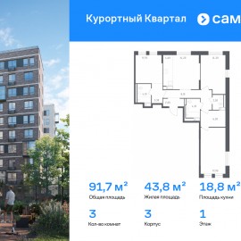 Строим кварталы для жизни с заботой о будущем. Предлагается 3-комнатная квартира комфорт-класса 91, 7 кв.м в корпусе 3 на 1 этаже, в ЖК «Курортный Квартал» Квартира с чистовой отделкой. Доступность дополнительных опций уточняйте у застройщика. Приобрести квартиру возможно по...