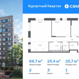 Строим кварталы для жизни с заботой о будущем. Предлагается 2-комнатная квартира комфорт-класса 68, 7 кв.м в корпусе 3 на 1 этаже, в ЖК «Курортный Квартал» Квартира с чистовой отделкой. Доступность дополнительных опций уточняйте у застройщика. Приобрести квартиру возможно по...