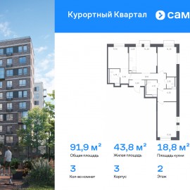 Строим кварталы для жизни с заботой о будущем. Предлагается 3-комнатная квартира комфорт-класса 91, 9 кв.м в корпусе 3 на 2 этаже, в ЖК «Курортный Квартал» Квартира с чистовой отделкой. Доступность дополнительных опций уточняйте у застройщика. Приобрести квартиру возможно по...