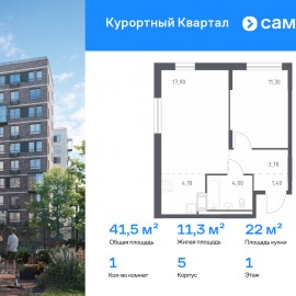 Строим кварталы для жизни с заботой о будущем. Предлагается 1-комнатная квартира комфорт-класса 41, 5 кв.м в корпусе 5 на 1 этаже, в ЖК «Курортный Квартал» Квартира с чистовой отделкой. Доступность дополнительных опций уточняйте у застройщика. Приобрести квартиру возможно по...