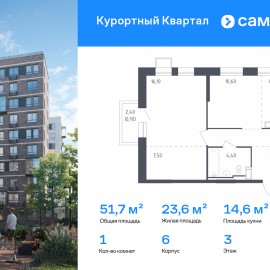 Строим кварталы для жизни с заботой о будущем. Предлагается 1-комнатная квартира комфорт-класса 51, 7 кв.м в корпусе 6 на 3 этаже, в ЖК «Курортный Квартал» Квартира с чистовой отделкой. Доступность дополнительных опций уточняйте у застройщика. Приобрести квартиру возможно по...
