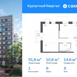 Строим кварталы для жизни с заботой о будущем. Предлагается 1-комнатная квартира комфорт-класса 51, 8 кв.м в корпусе 6 на 5 этаже, в ЖК «Курортный Квартал» Квартира с чистовой отделкой. Доступность дополнительных опций уточняйте у застройщика. Приобрести квартиру возможно по...