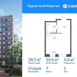 Строим кварталы для жизни с заботой о будущем. Предлагается квартира студия комфорт-класса 26, 7 кв.м в корпусе 7 на 1 этаже, в ЖК «Курортный Квартал» Квартира с чистовой отделкой. Доступность дополнительных опций уточняйте у застройщика. Приобрести квартиру возможно по...
