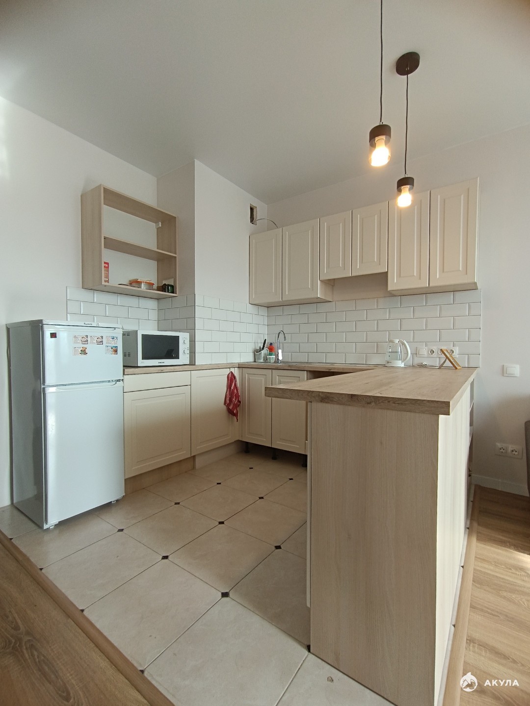 -Удобно выделена зона кухни