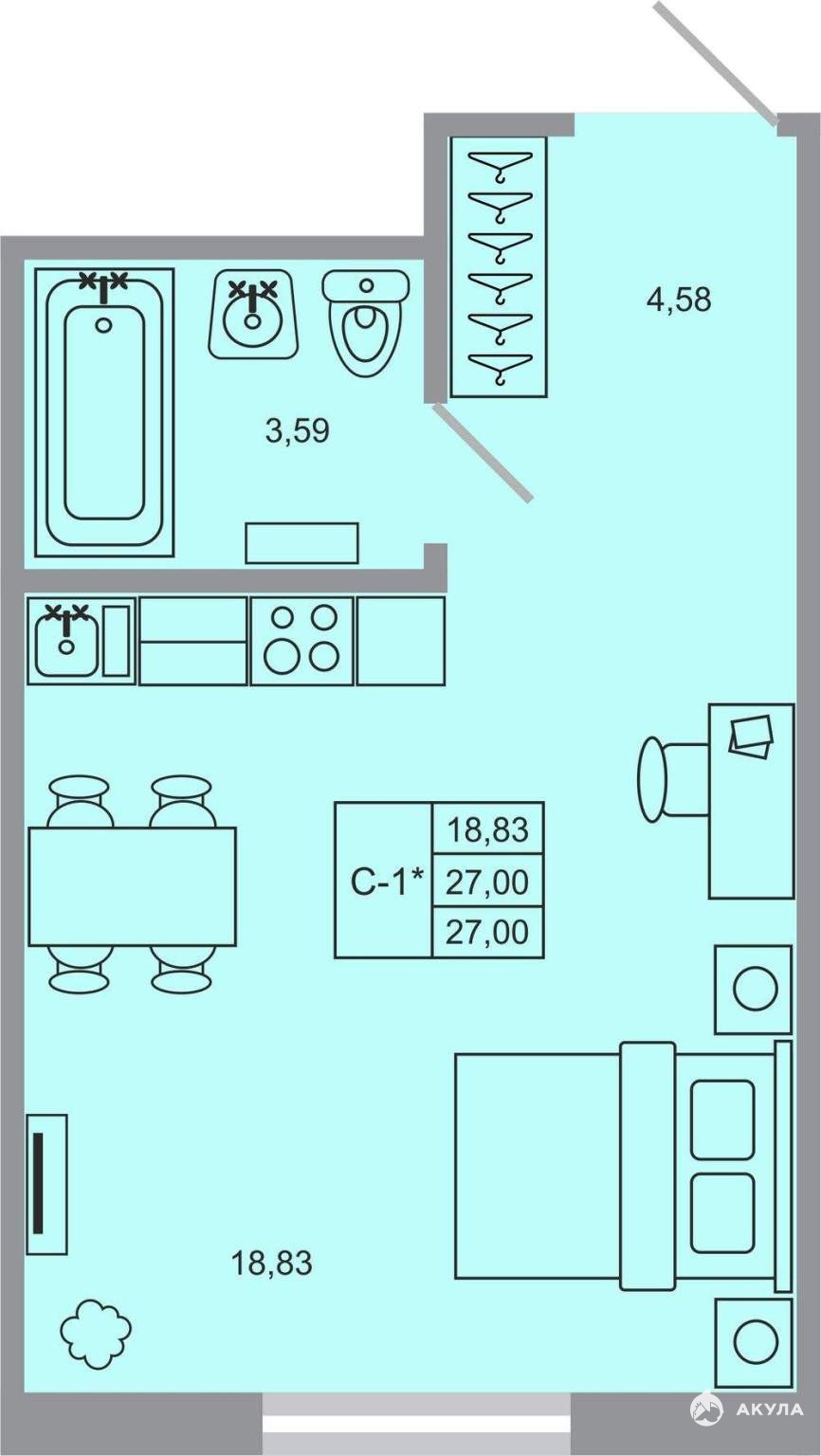 Жилая площадь 18.83 м2, чистовая отделка, комнаты изолированные.