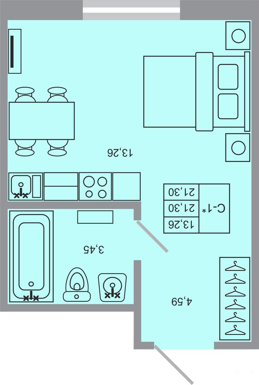 - 13.26 м²