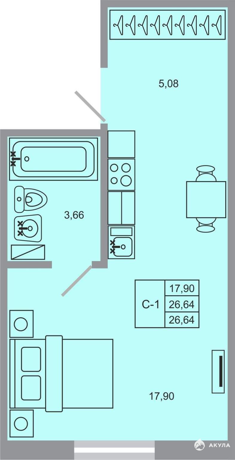- 17.9 м²