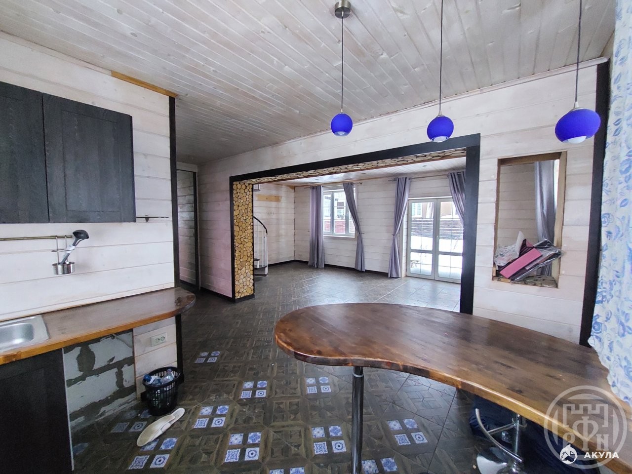 Первый этаж: кухня-гостиная 40 м2, санузел 3, 5 м2 и прихожая. По всему этажу теплый водяной пол.