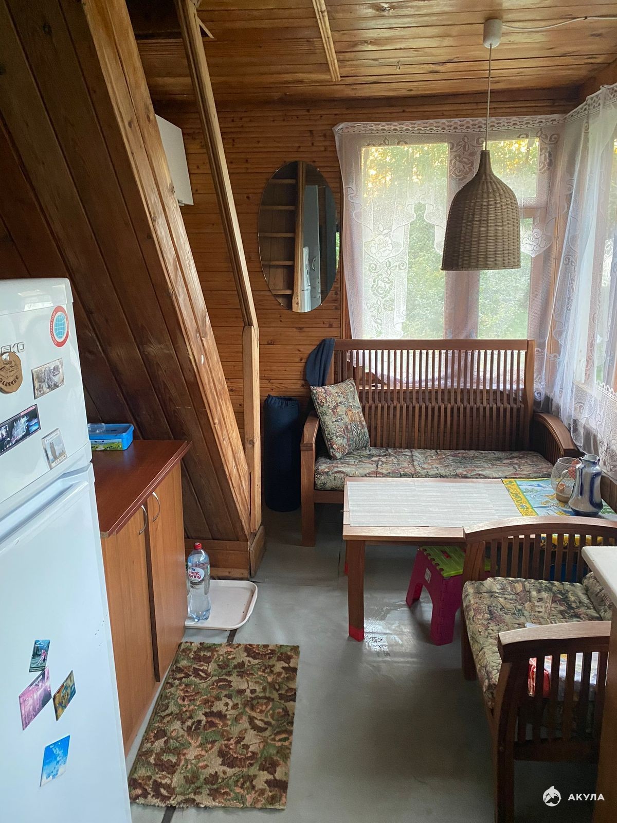 Дом садовый, площадь 66.7 м2. На первом этаже расположена веранда -10, 4м2, кухня – 6 м2, и 2 комнаты (12, 5 и 6 м2), на втором этаже – одна большая комната – 20 м2 и кладовая.