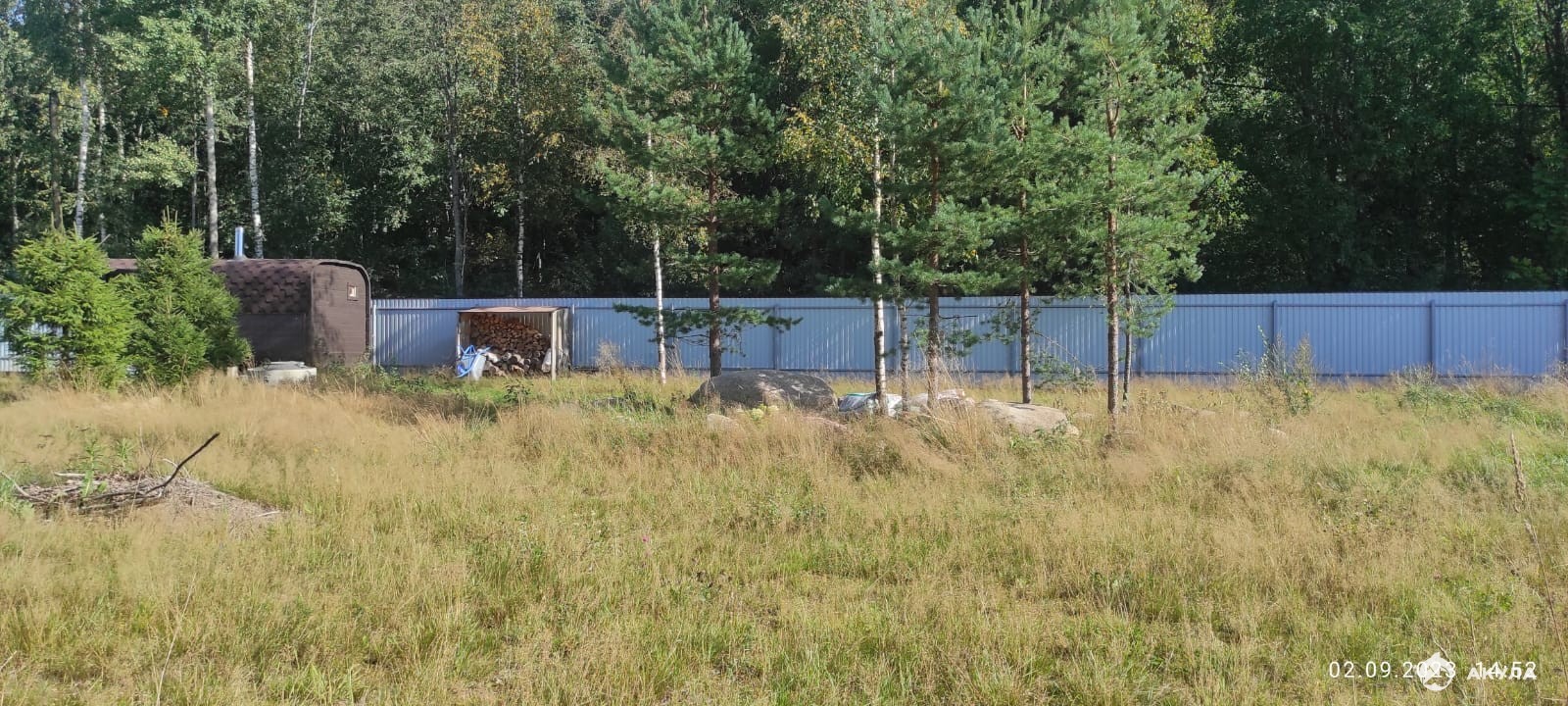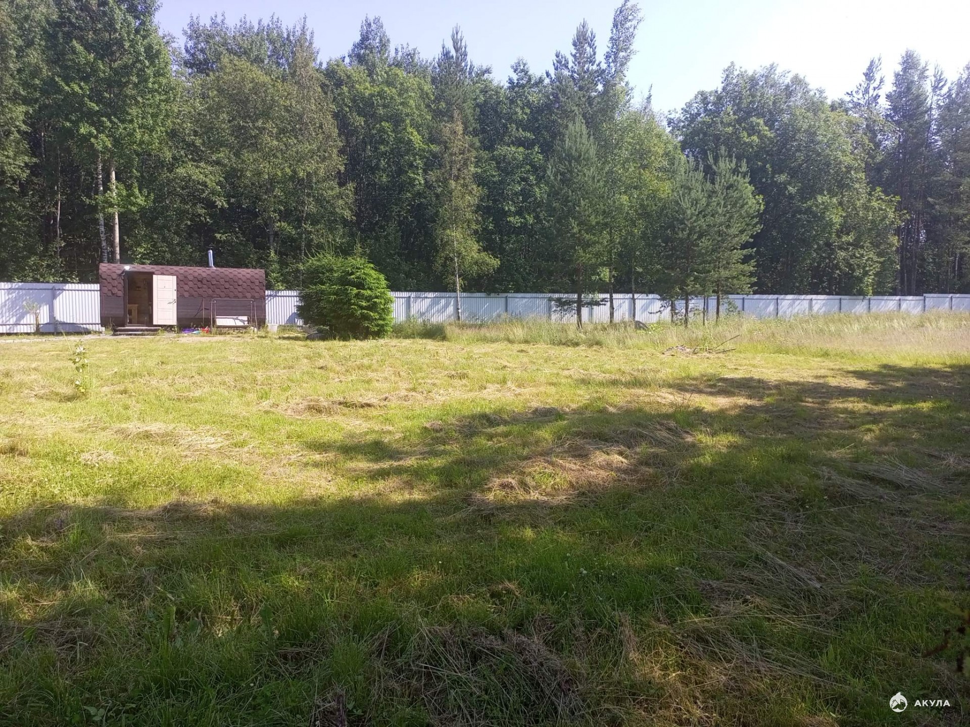 По периметру огорожен забором. Внутри свой лесок с грибами. Только одни соседи, больше никого не будет. В шаговой доступности озеро.
