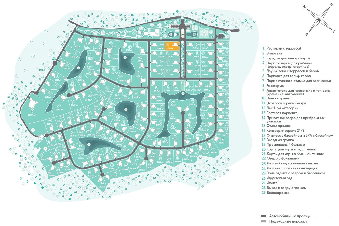 2. Отдельный парк для жителей поселка с прогулочными зонами, спортивными площадками и велодорожками протяженностью более 2 км