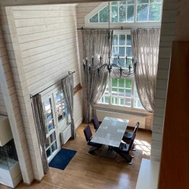 3-57773 Сдаётся 2-х этажный коттедж Хонка (Аятонта) площадью 350 м^2 на лесном участке с ручьем 70 соток. Гостиная в едином пространстве со столовой со вторым светом (высота потолка 8 метров) площадь 60 м^2, три спальни (19, 18, 16 м^2), кабинет (17 м^2), кухня 18 м^2), детская 16 м^2, две ванные...