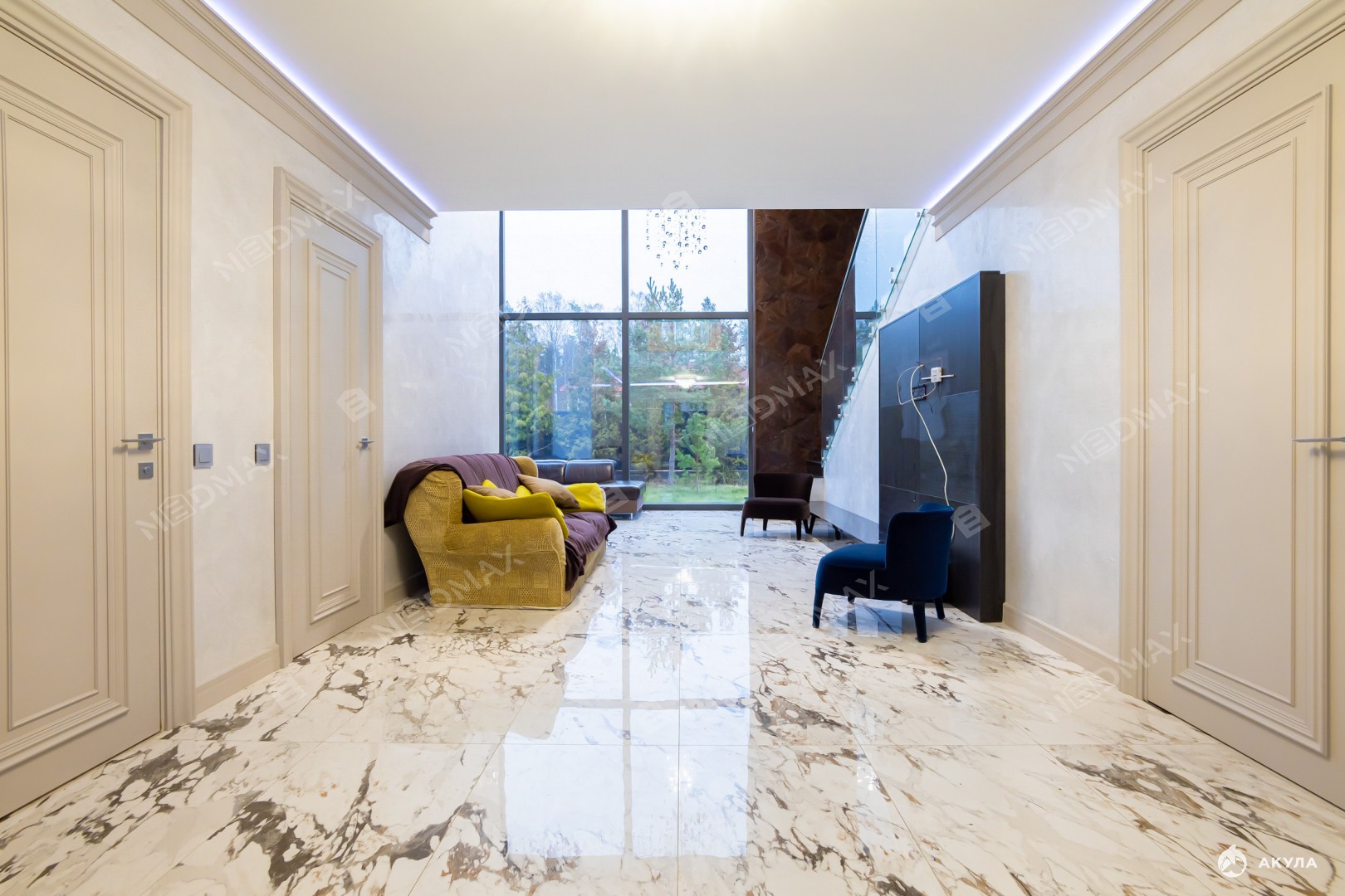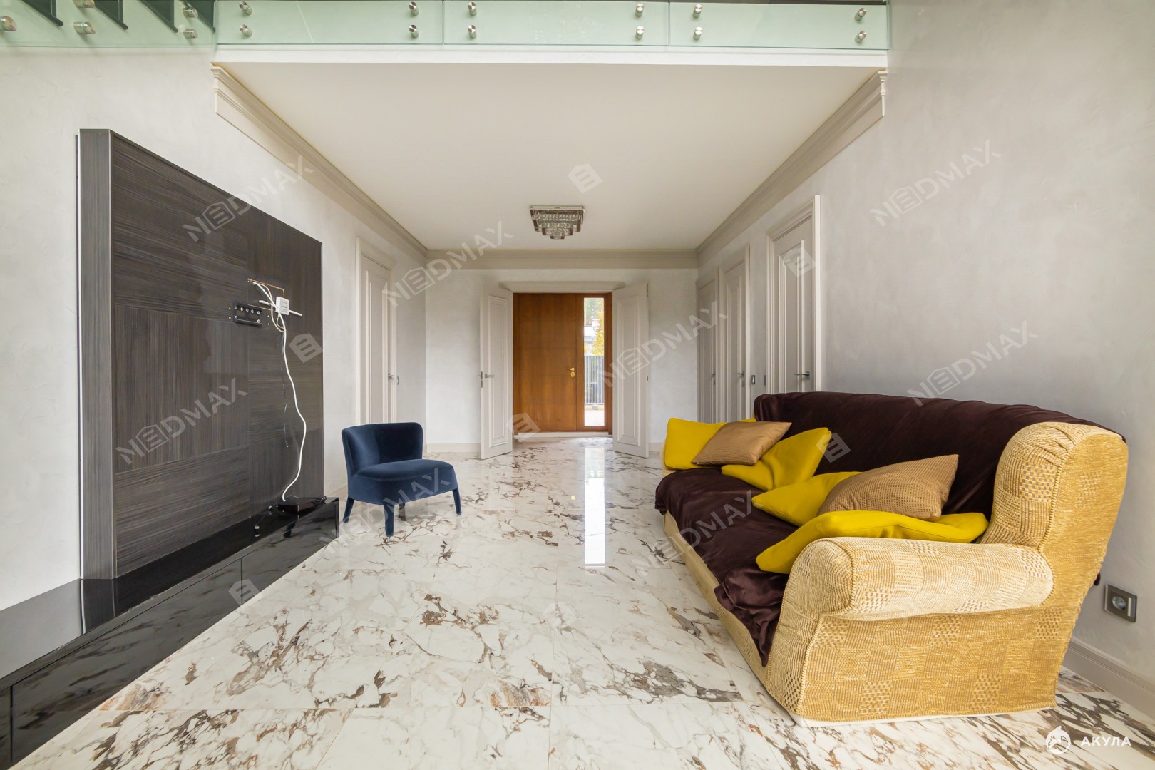 • На втором этаже расположены кабинет и три спальни с индивидуальными гардеробными и санузлами. Одна из спален идеально подходит для няни с ребенком благодаря своей изолированной планировке.