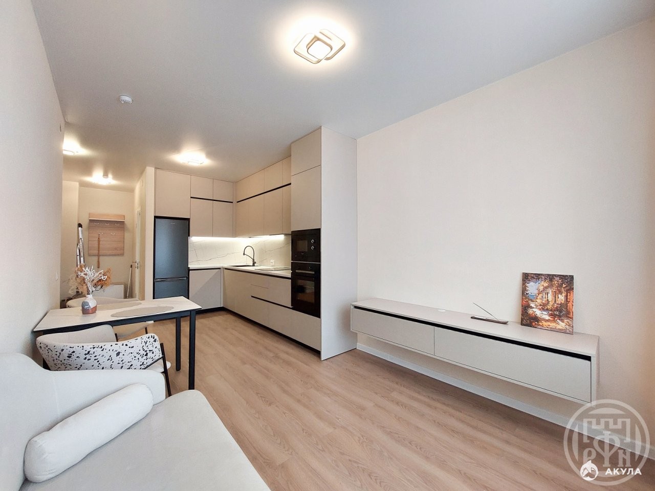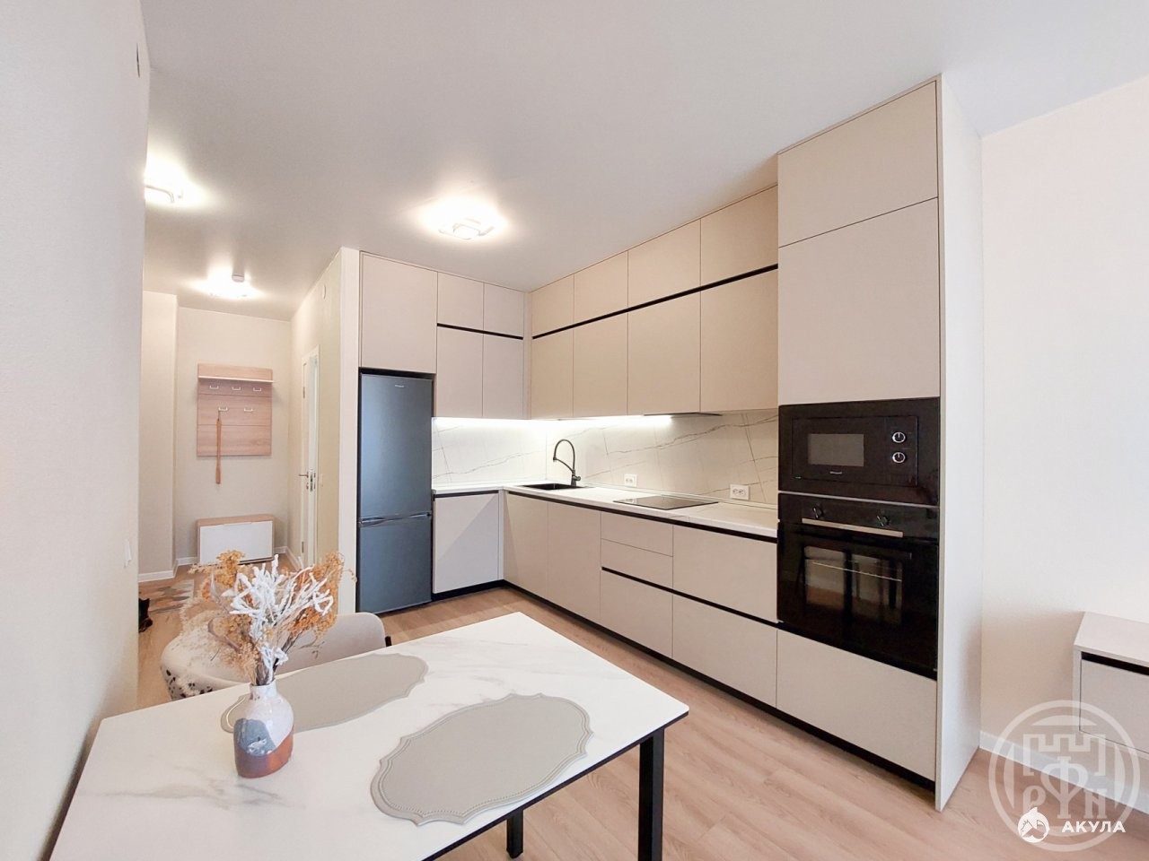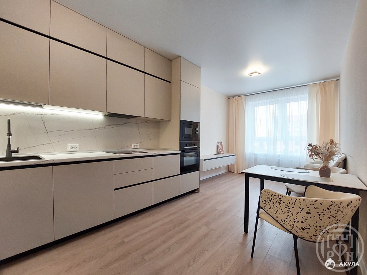 Квартира полностью укомплектована мебелью и техникой. Продумана до мелочей для Вашего комфорта. Встроенная техника от микроволновки, духовки, посудомоечной машины до хранения вещей.