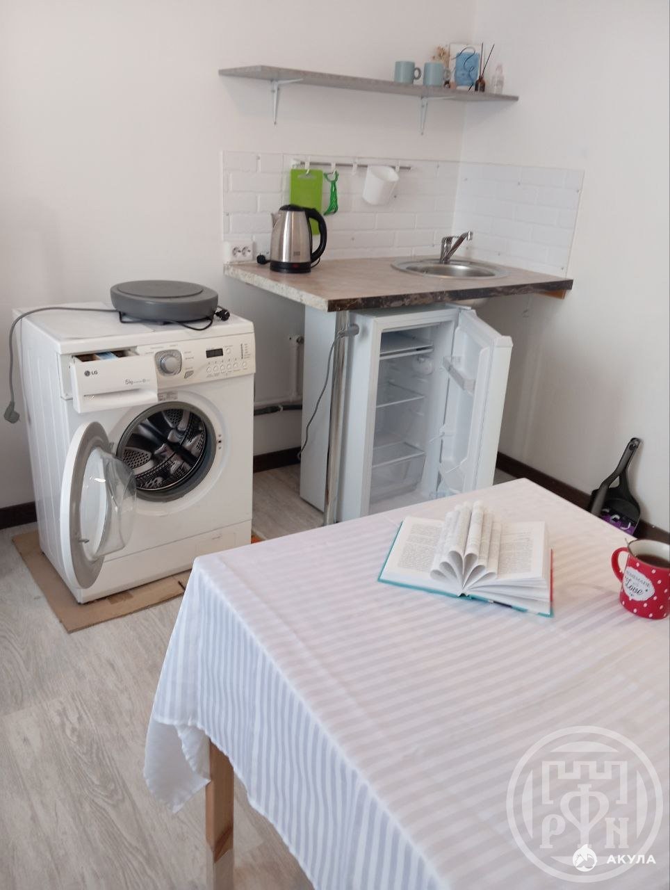 Квартира чистая, со свежим ремонтом. Вся мебель и техника для жизни есть: в кухне холодильник, варочная поверхность, чайник, посуда, кухонный стол, в комнате диван-кровать со спальным местом 140*200, шкаф-комод, стеллаж, стол, в санузле ванная, стиральная машина, мойка, шкафы.