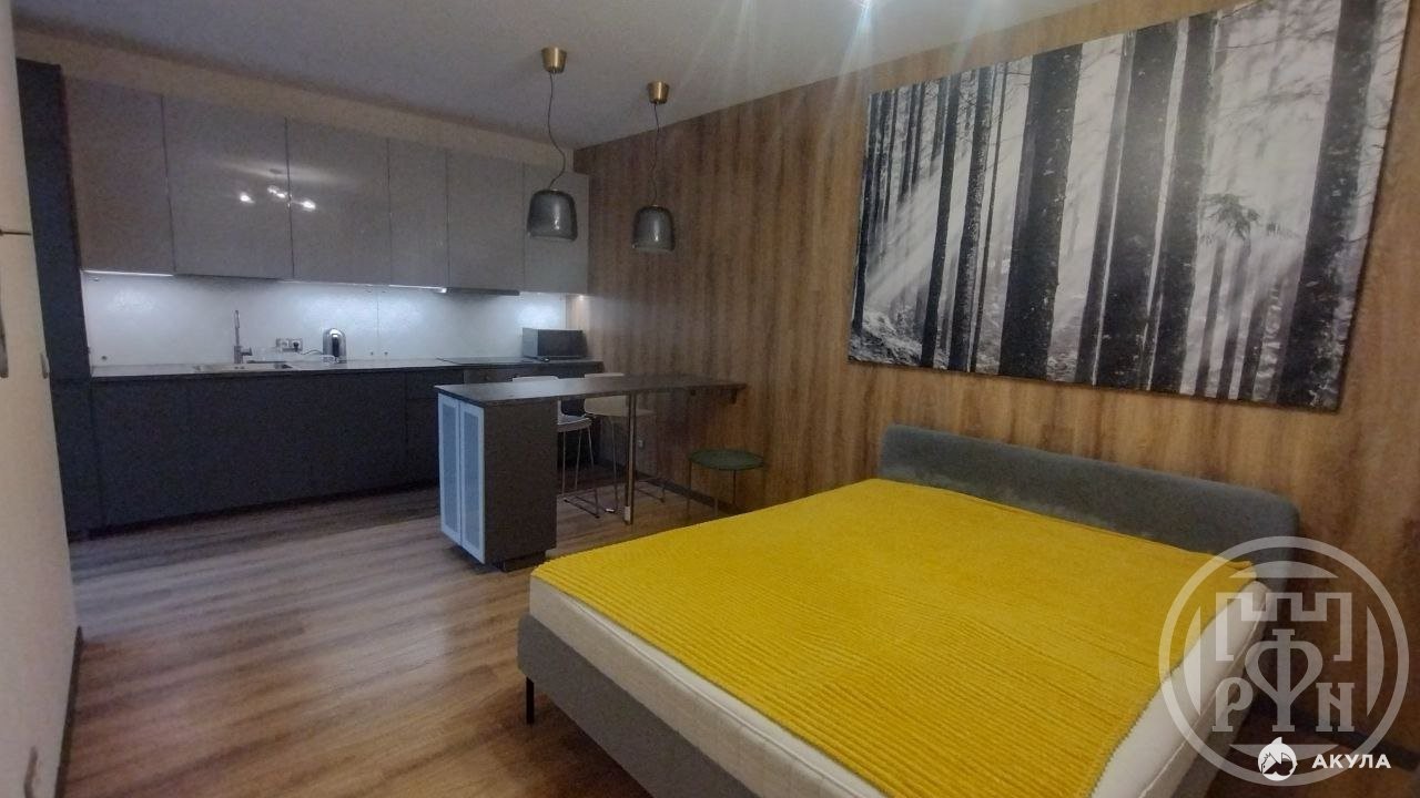Кухонная зона обьедененна со спальной, и отдeльнaя cпальная комнатa.
