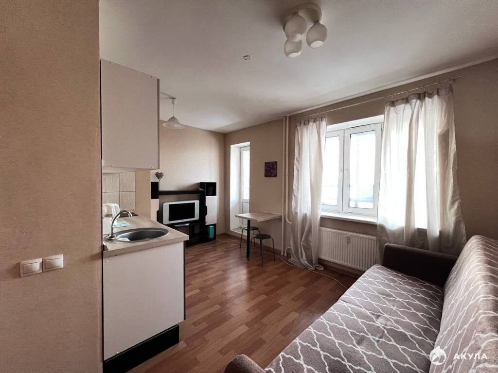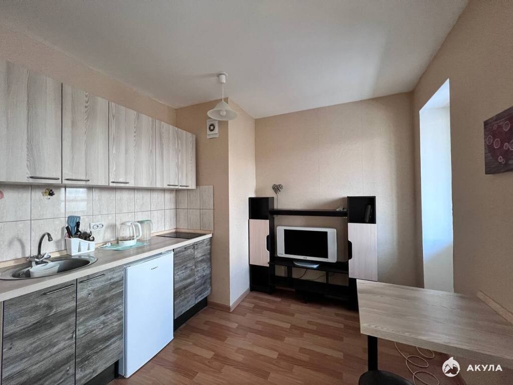 Квартира меблирована и оснащена всей необходимой бытовой техникой: здесь есть удобный диван, вместительный шкаф, стиральная машина, полностью оборудованный кухонный гарнитур и всё, что нужно для комфортной повседневной жизни.