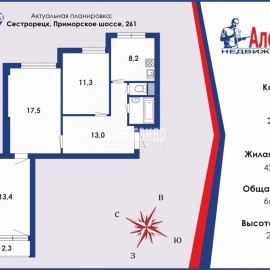 1701383 Просторная трёшка в Сестрорецке. Идеально подойдёт для семьи. Для семей с детьми подарим скидку. Записывайтесь на просмотр. Квартира с качественным ремонтом, светлая, уютная. Преимущество - экономия времени и финансов. Первый этаж даёт приятную возможность быстрее...