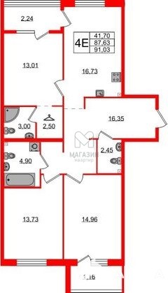 - Площадь - 91 м2