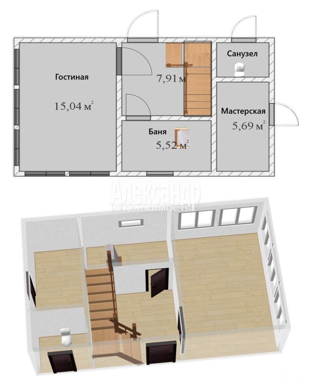 В доме имеются 3 комнаты (15+10+8) кв.м, баня с душем, туалет, подсобные помещения.