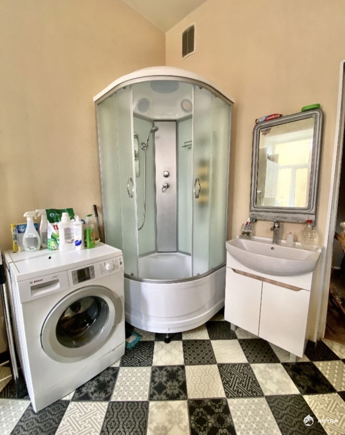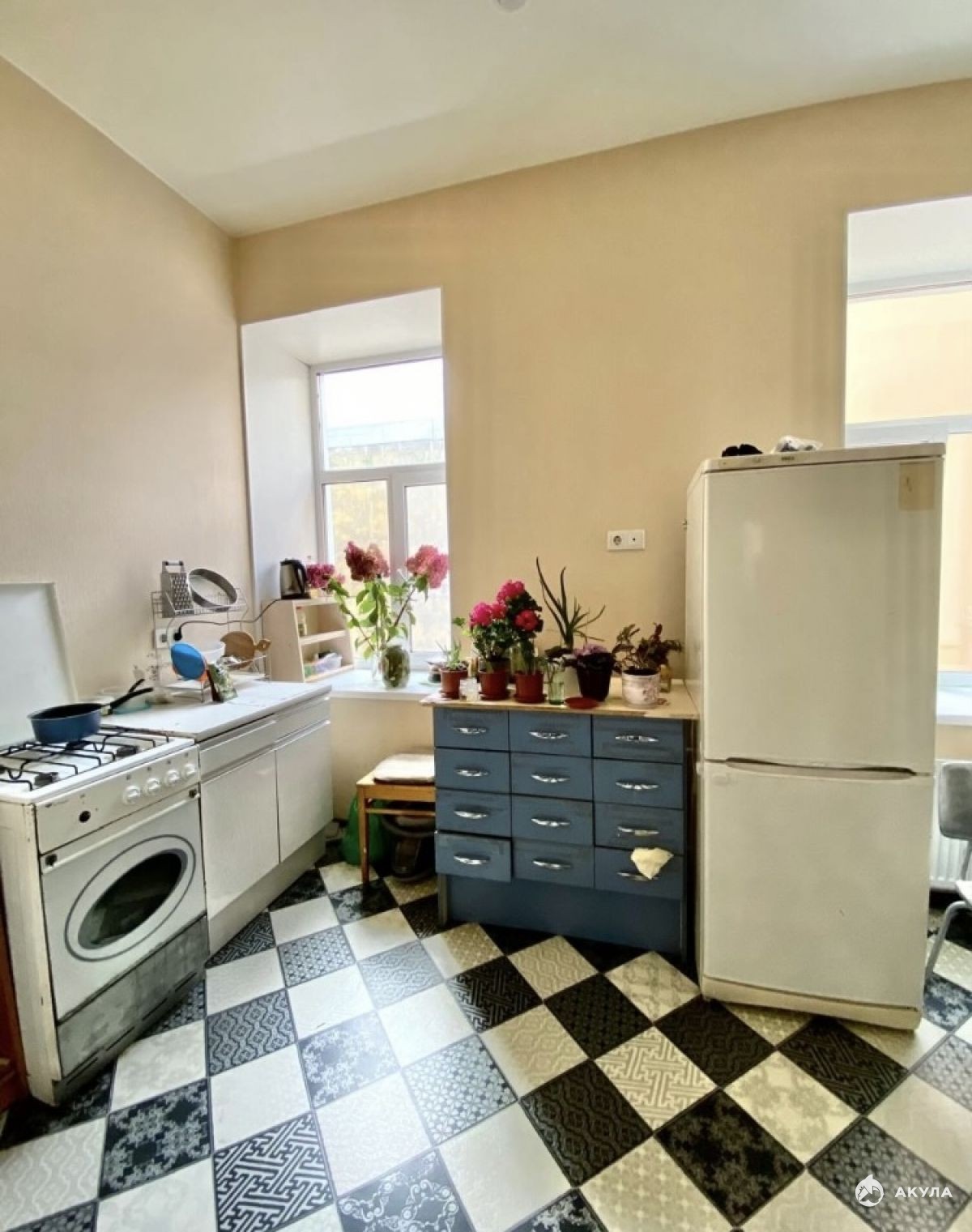 Квартира очень чистая, квартиранты спокойные, чистоплотные и дружелюбные люди. Душевая кабина находится на кухне 14 кв.м, которая закрывается на защелку, что позволяет принимать душ в любое, удобное время. В каждой комнате — отдельный холодильник. На кухне у каждого из арендаторов есть свой отдельный стол. Стиральная машина-автомат — общая, стоит на кухне, ею может пользоваться каждый из проживающих. Туалет большой и чистый. Плита газовая Водоснабжение центральное (не газовая колонка).