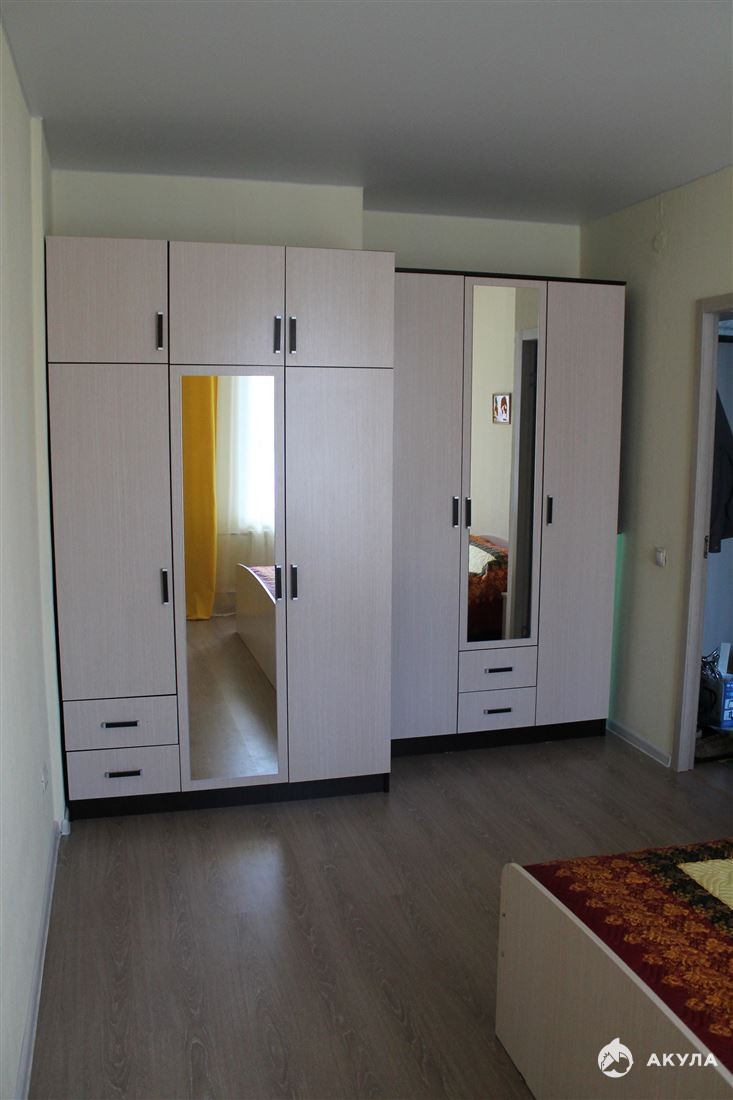 В квартире ремонт, кухня, в комнате вместительные шкафы, двуспальная кровать.