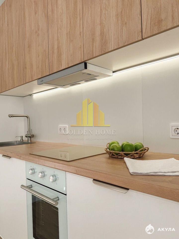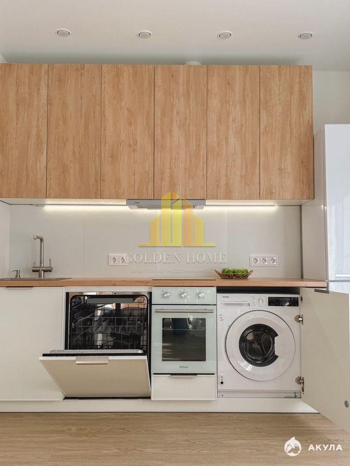 — Кухня полностью оборудована: индукционная плита, духовой шкаф с таймером, посудомоечная и стиральная машины, холодильник 2 м, микроволновка, фильтр для воды, большая зона хранения (240 см).