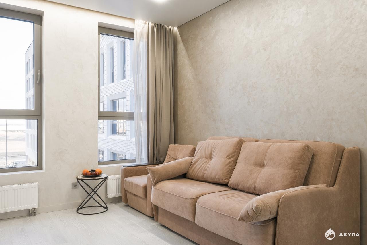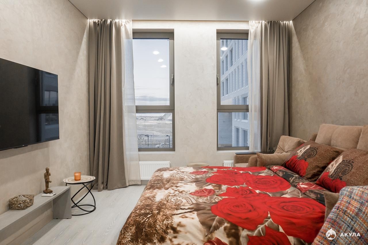 Общая площадь 35 кв.м. В квартире есть все для комфортной жизни, выполнен качественный евроремонт. Вся бытовая техника на кухне и в ванной комнате новая. Квартира двусторонняя, четыре окна с широкими подоконниками, можно использовать как сиденья. В комнате двуспальная кровать с ортопедическим матрасом толщиной 25 см. Кровать можно сложить как диван. На кухне есть вся техника и посуда для готовки и приема пищи. Ничего покупать не надо. Стол на кухне выдвигается и убирается при необходимости. В комнате и прихожей есть шкафы для одежды. Заезжай и живи!