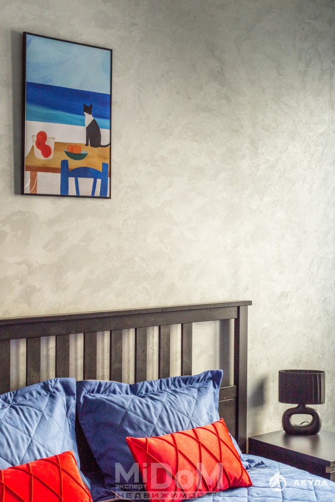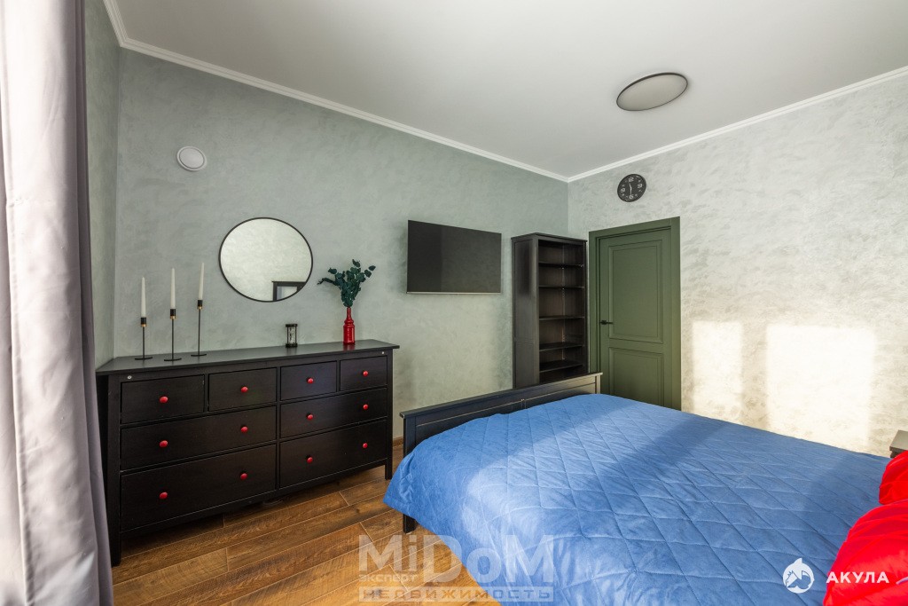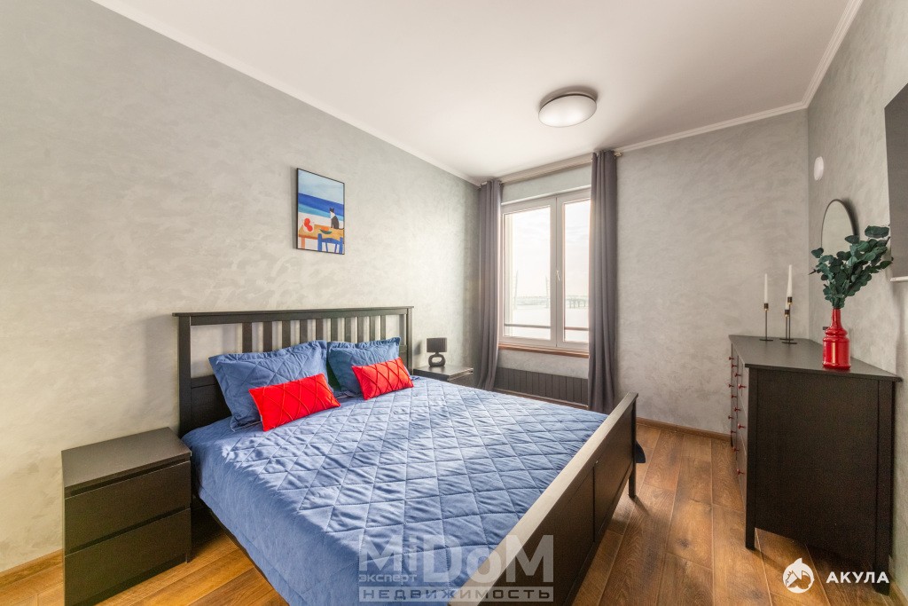- уютная спальная с большой кроватью , телевизором и окнами на фарватер Финского