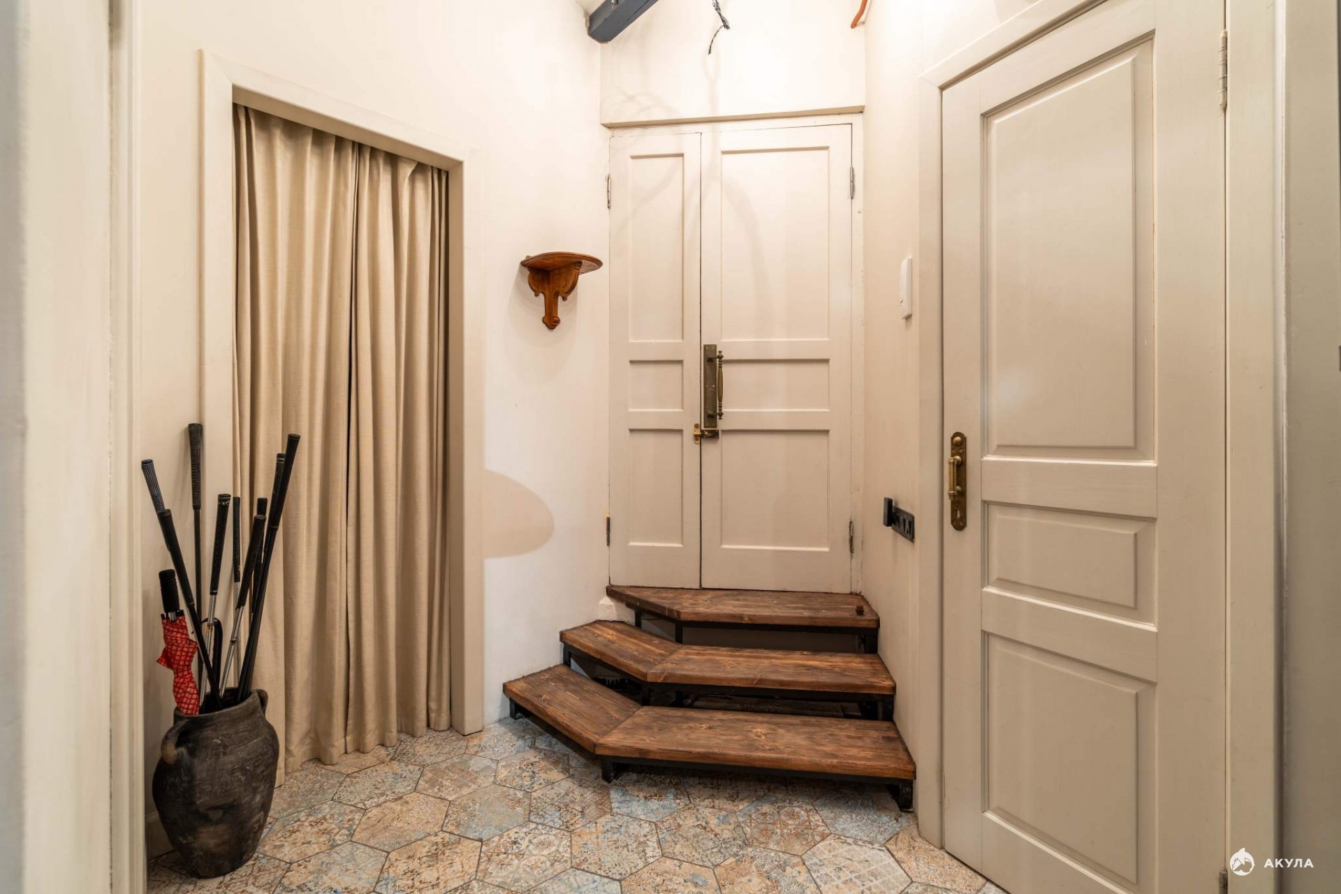 Большим достоинством квартиры являются её потолки — 3, 4 метра. Полы деревянные. Толстые кирпичные стены создают особую тишину и уют.