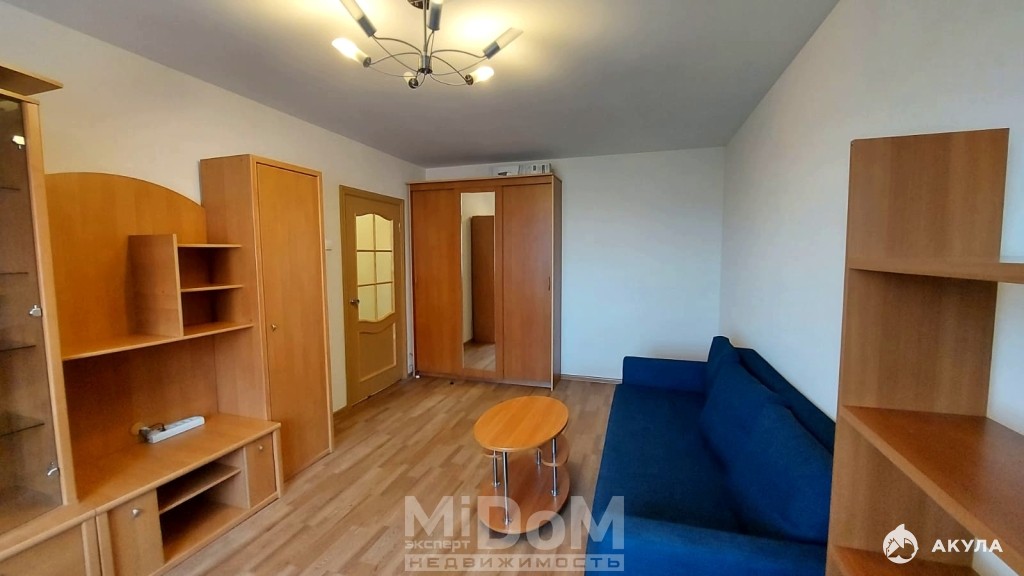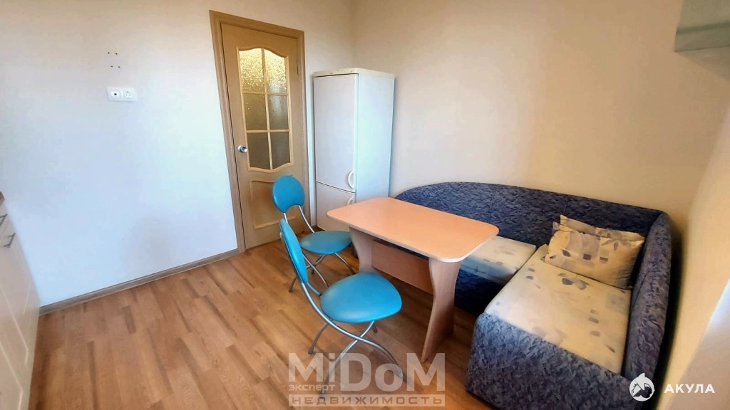 Просторная, 39 м кв, большая комната, вместительная кухня с выходом на застекленный балкон.